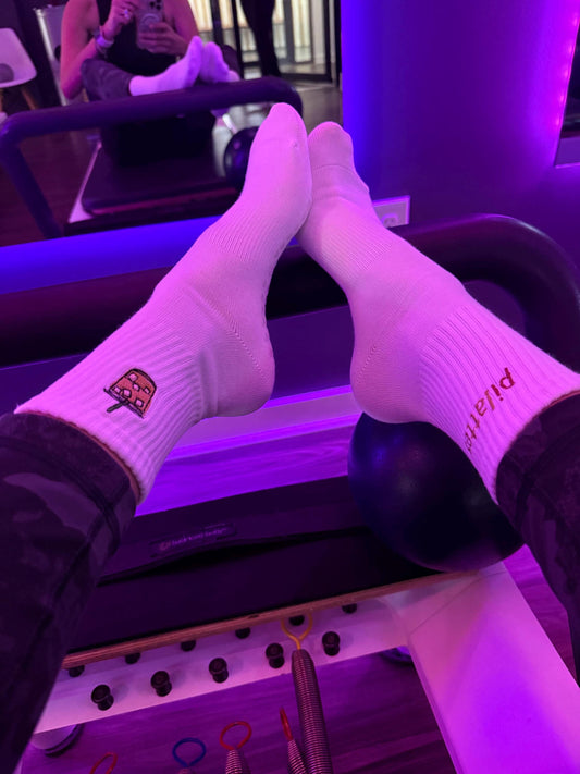 Pilattes Embroidered Socks – Custom Crew, Calf, or Non-Slip | Pilates & Coffee Inspired Athleisure