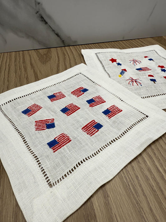 Party in The USA | Embroidered Linen Coasters