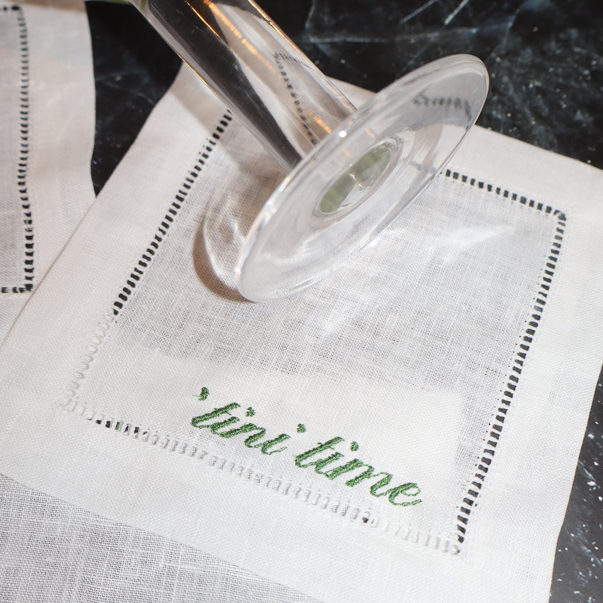 Add a touch of elegance and fun to your table with our embroidered linen coasters! This set of features 4 unique martini-themed designs. These coasters are perfect for entertaining, gifting, or simply elevating your everyday dining experience.